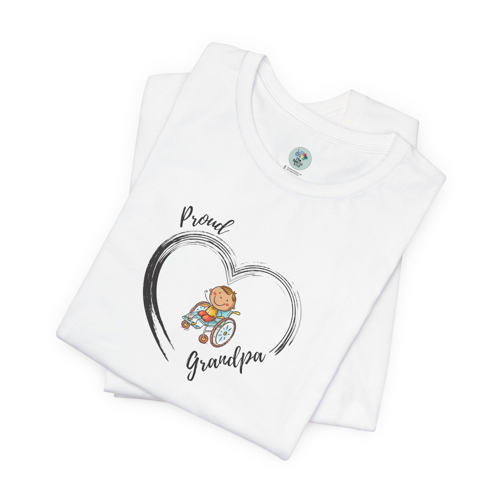 Proud Grandpa -BOY on Wheelchair Short Sleeve T-Shirt for Awareness and Celebration - 7 colors